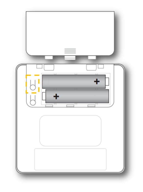 - Поверніть VELUX Touch, щоб отримати доступ до відсіку для батареї на задній панелі. Зніміть кришку відсіку для батареї та знайдіть кнопку ключа продукту (значок ключа) зліва.